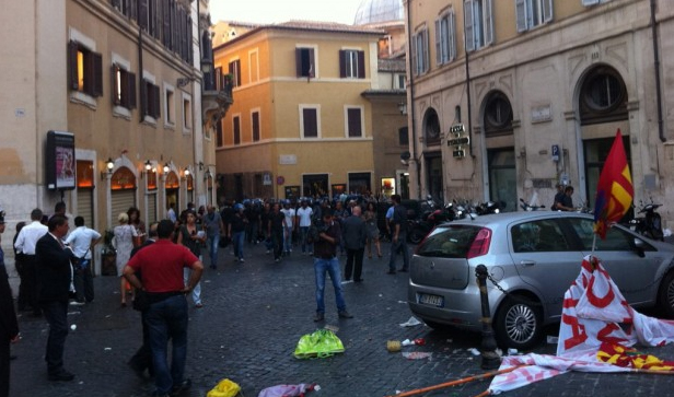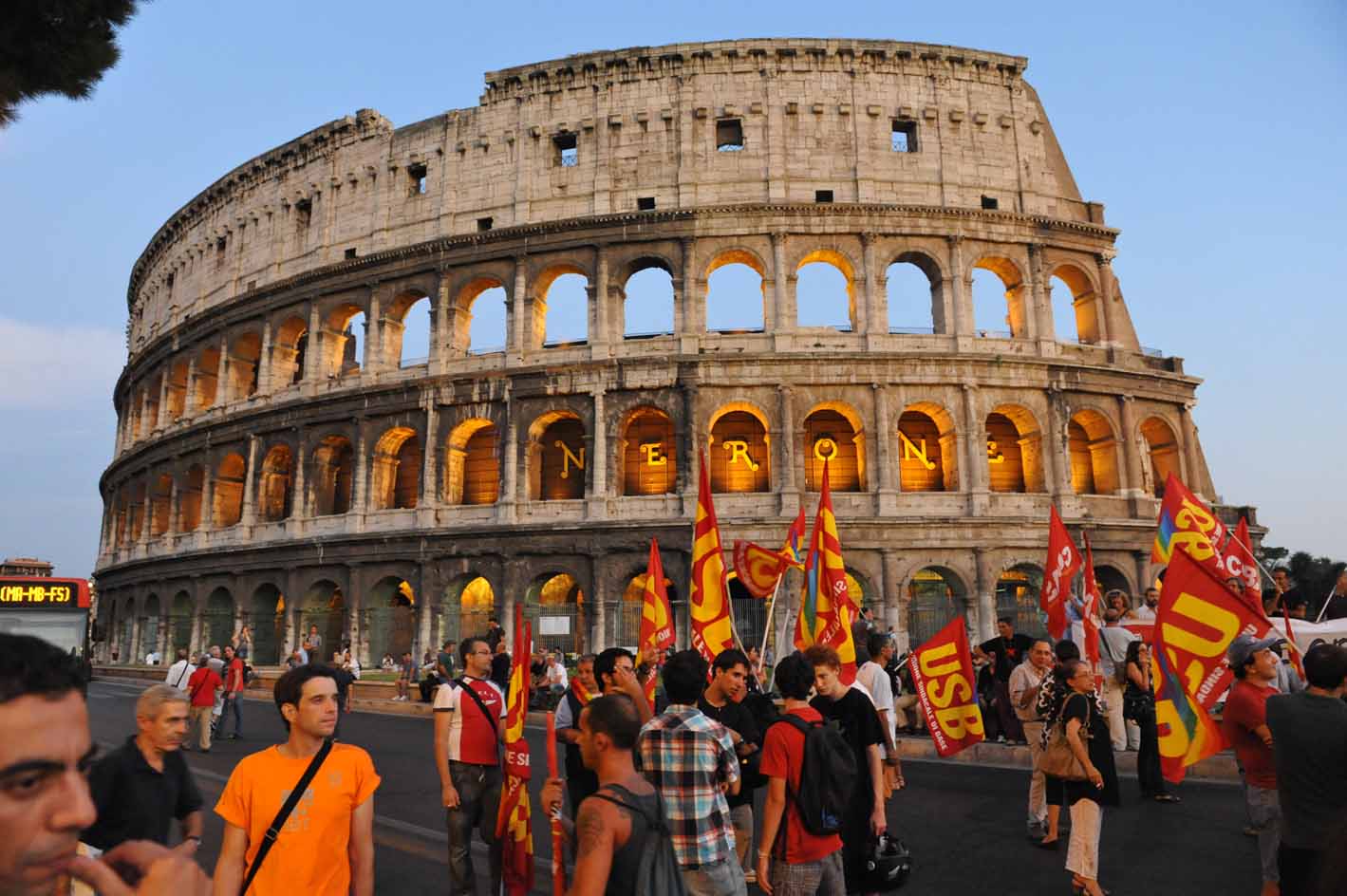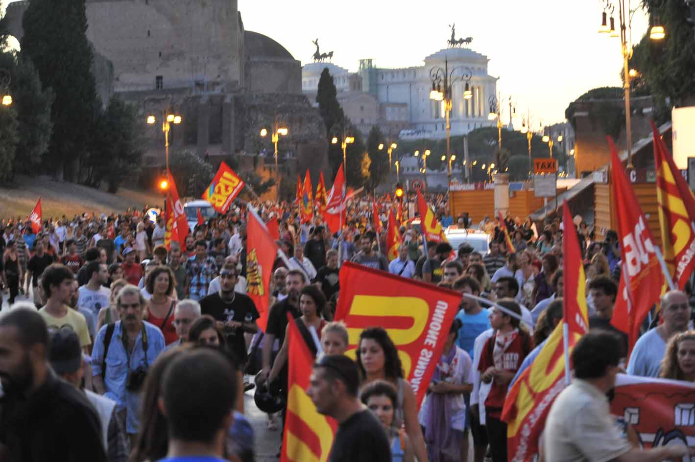 Il Presidio blocca il centro storico e un nutrito corteo si dirige al Colosseo dove si improvvisa un’assemblea che assicura il ritorno nelle piazze fino alla giornata del 15 ottobre.