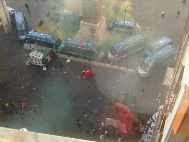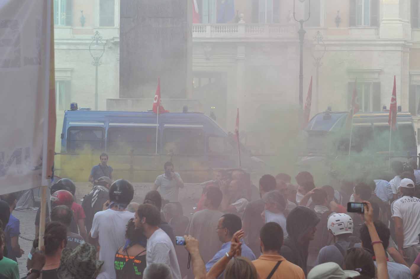 sulla Manovra, il Presidio in piazza Montecitorio veniva attaccato da